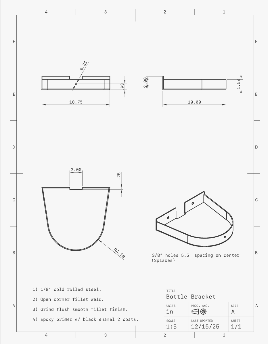 The KEC Foamer Pack-Out "Bottle Bracket" requires some welding skills. If you want to take a crack at it. Here’s a drawing for that too.
